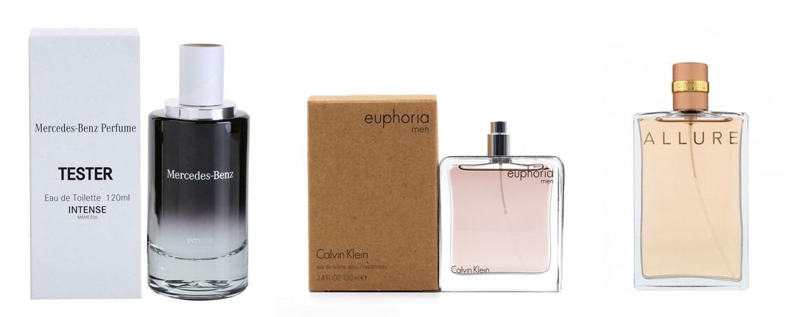 - الزجاجة: الزجاجة أنيقة وأصلية تماماً كما في العطر العادي، وقد يُكتب عليها بخط صغير جداً عبارة (tester not for sale). في حالات قليلة قد تكون بدون غطاء.